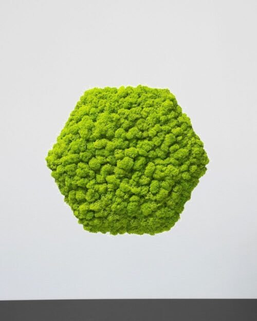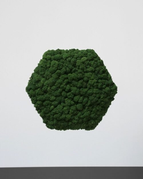 Sammalpaneeli Kuusikulmio aidolla suomalaisella poronjäkälällä on moderni ja luonnon inspiroima seinäpaneeli, jossa yhdistyvät säilötty sammal ja kevyt polyesteripaneeli. Tuloksena on koristeellinen ratkaisu, joka antaa huoneellesi eloisan ja harmonisen ilmeen — täysin ilman huollon tarvetta.