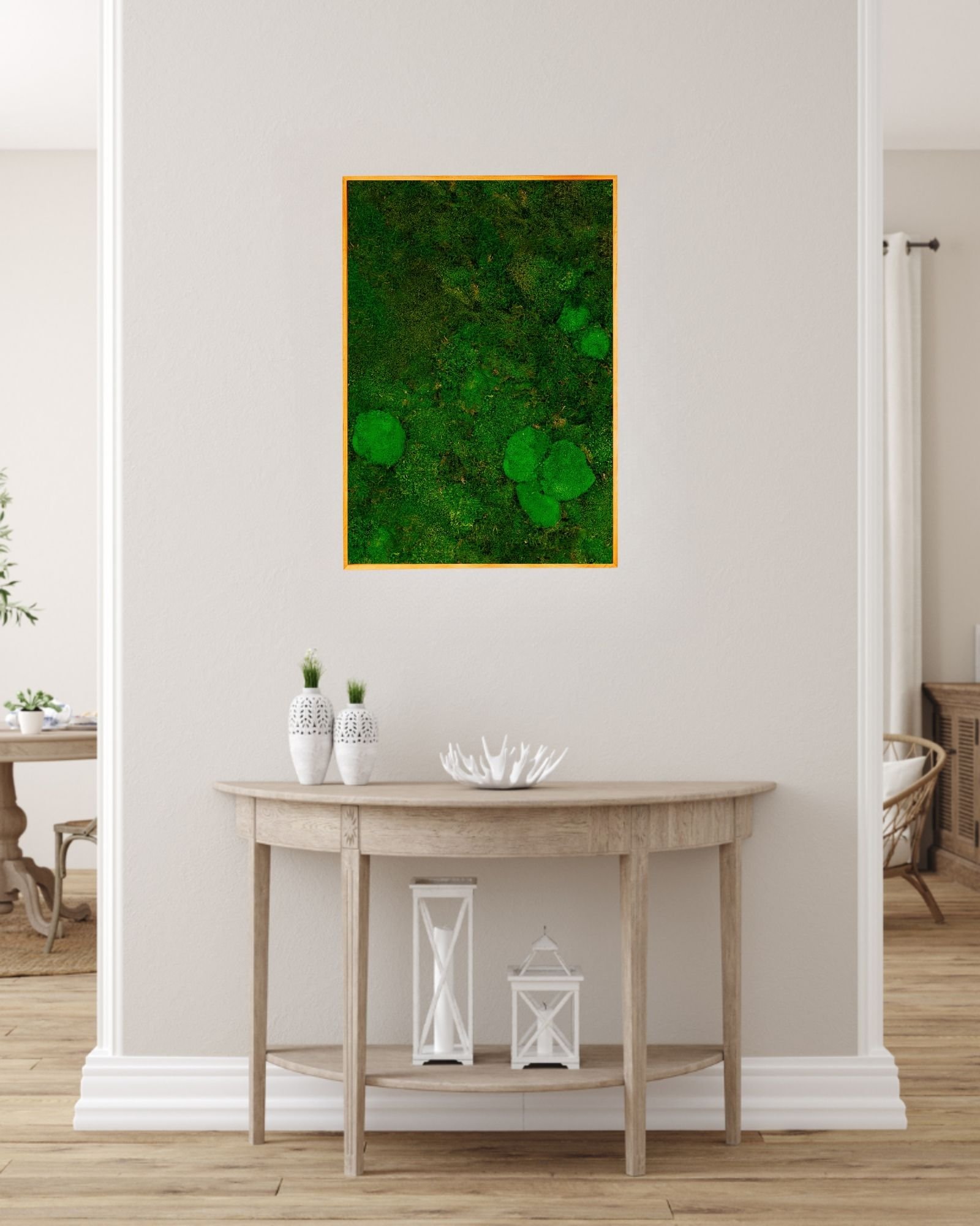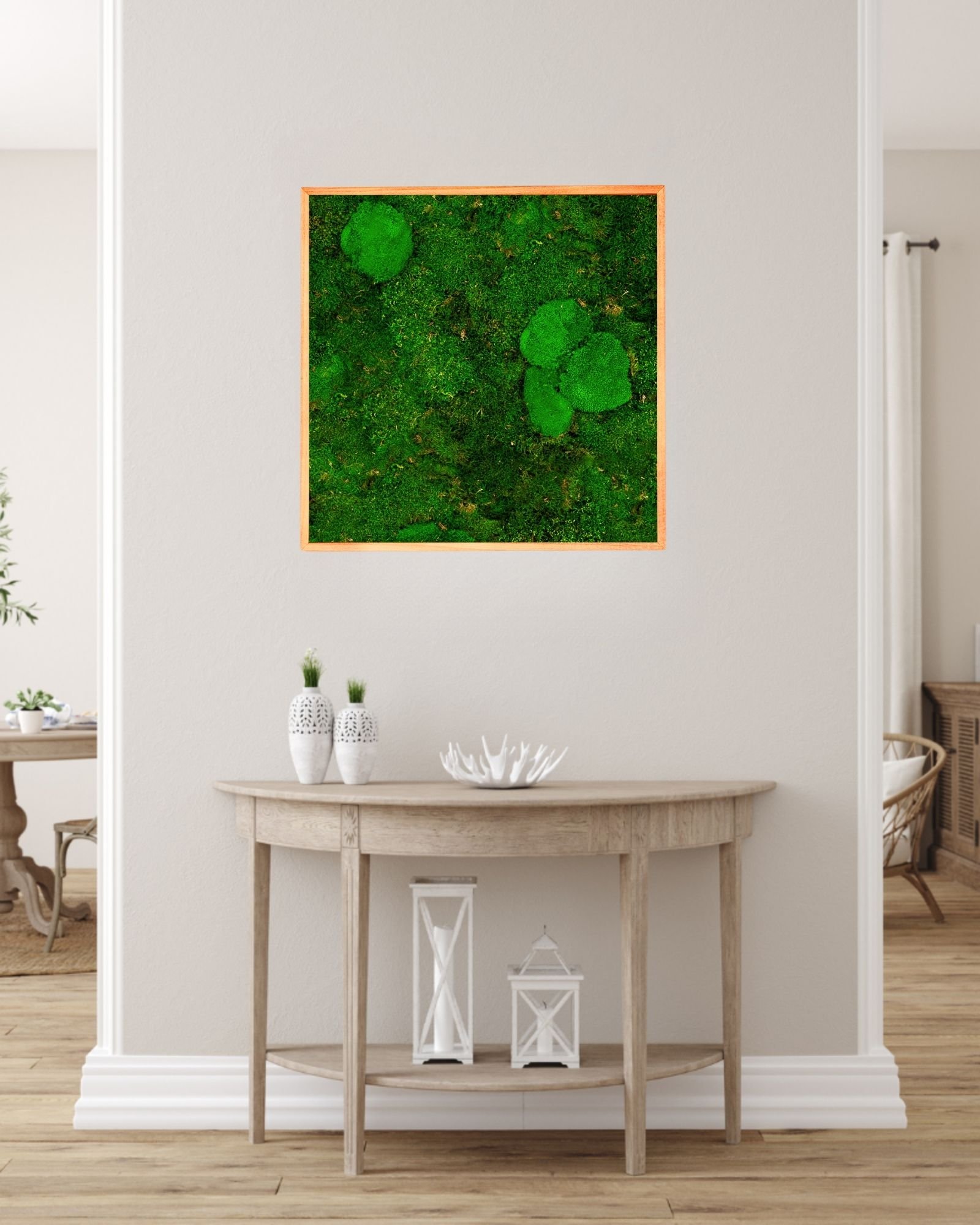 - Olohuoneen voimaelementti: Aseta taulu sohvan yläpuolelle tai ruokapöydän läheisyyteen. Pallosammalen 3D-efekti luo upean varjojen leikin eri valaistusolosuhteissa, tuoden seinälle eloa.