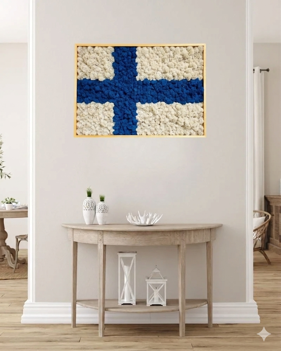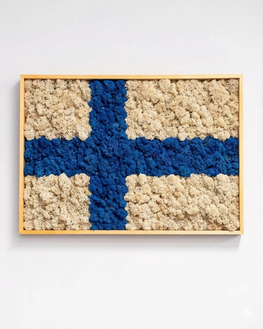 Etsitkö sisustuselementtiä, joka viestii arvokkuutta, identiteettiä ja rakkautta luontoon? Me Forever Floralla uskomme, että kansallissymbolit voivat olla osa modernia ja ekologista sisustusta. Sammaltaulu Ruotsi on käsintehty kunnianosoitus länsinaapurillemme, jossa perinteinen Ruotsin lippu kohtaa skandinaavisen metsän rauhoittavan voiman. Se ei ole vain koriste, vaan eläväinen ja pehmeä taideteos, joka muuttaa minkä tahansa seinän huoneen keskipisteeksi – täysin ilman huolenpitoa.